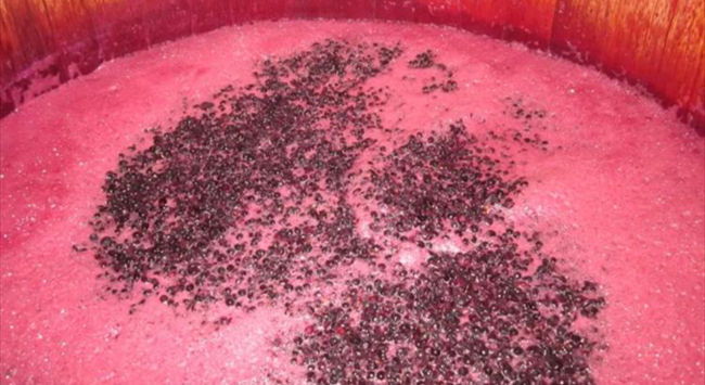 我在上葡萄酒課時(shí),會(huì)提到一個(gè)釀酒工序,叫做“浸皮”,如下圖。