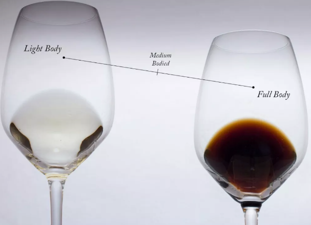 酒體一般形容一款葡萄酒入口后給舌頭的重量感。一般是葡萄酒重量、密度、粘度等口感的總合。一般會用礦泉水和牛奶做示范,展現(xiàn)不同密度的液體入口的感覺。