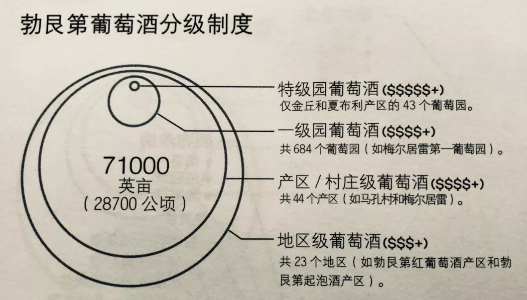 在勃艮第,土地被分為4個等級,地區級Regionale、村莊級Village、一級園Premier Cru和特級園Grand Cru。