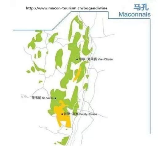 位于勃艮第南部的馬孔子產區南北蔓延35公里,東西橫跨10公里,在5個知名子產區中面積最大,盛產酒體偏飽滿、果香成熟和帶有奶油風味的霞多麗白葡萄酒,尤以南部普伊-富賽Pouilly-Fuisse和圣維朗Saint-Veran名聲最盛。