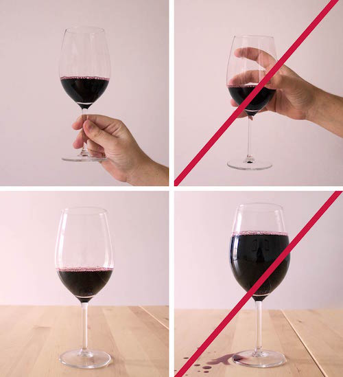 嚴格說來,葡萄酒持杯時,應(yīng)該用手指握住杯柱或杯底座,如果直接手握杯肚,由于手溫高于侍酒溫度,會導(dǎo)致酒液升溫,從而影響口感。