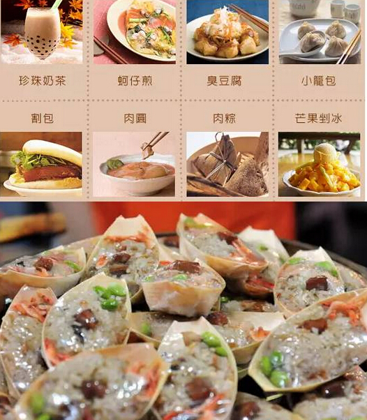 臺(tái)灣美食融合閩南、潮州、客家和日本的煮食風(fēng)格,單單是臺(tái)北,已有超過(guò)20條著名的小食街。一流的掃街小食如蚵仔煎、鹽酥雞、牛肉面和鹵肉飯等,深受全球游客歡迎!