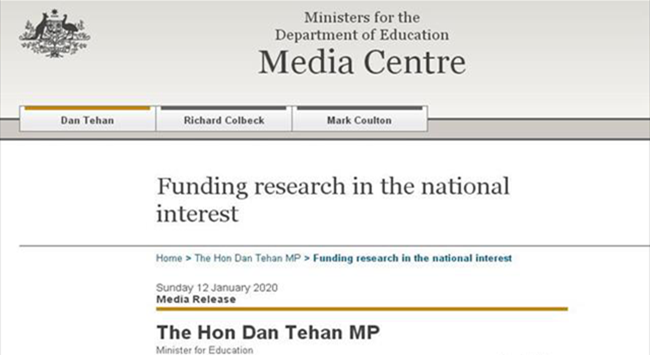 聯邦教育部官網12日報道,聯邦教育部長特翰(Dan Tehan)宣布,政府將通過澳洲研究委員會(ARC)為20個新的研究項目提供950萬元的資金。獲資助的項目包括:蒙納士大學提出的調查確定葡萄酒地理標志所需的標準、證據和程序,這些標準、證據和程序用于貿易協定和法律糾紛。澳洲天主教大學提出的開發一個在線工具,為數字社會中的兒童識別和分享最佳實踐,包括數字媒體生產、網絡安全教育、數字游戲和數字育兒等領域的新資源、材料和項目。