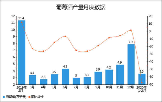 以上就是2020年1-2月全國葡萄酒產量統計,數據來源于國家統計局及中國報告大廳數據中心整理發布,僅供參考。