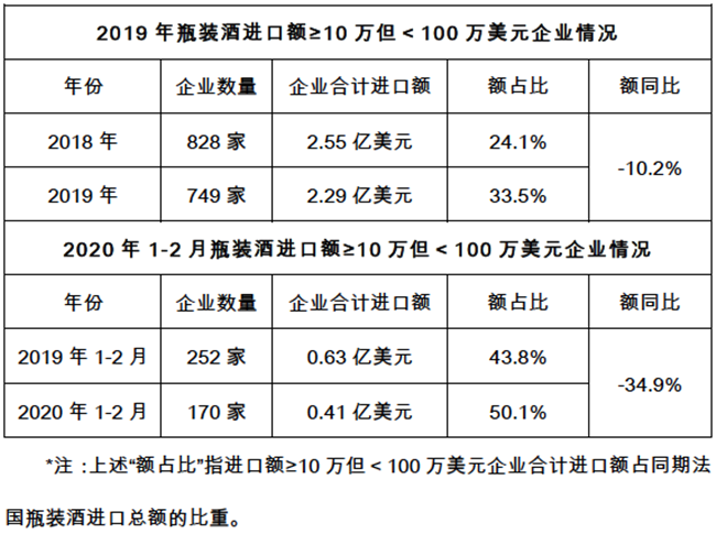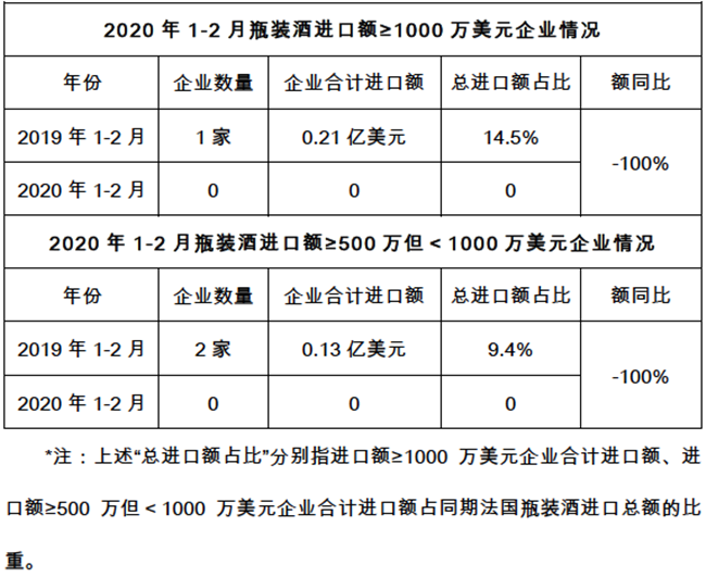 今年1-2月,市場(chǎng)低迷與疫情影響的雙重沖擊下,更是出現(xiàn)了無(wú)企業(yè)進(jìn)口法國(guó)瓶裝酒超過(guò)500萬(wàn)美元的慘淡開(kāi)局。