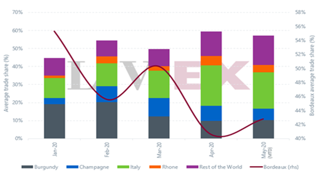 長期以來,勃艮第一直是波爾多衰落的主要受益者。 去年,該酒區(qū)的交易份額更創(chuàng)歷史新高 – 全年平均高達(dá)20%。 然而,本年至今,這數(shù)字已跌至15%。 在《高峰后的勃艮第》的專題報(bào)告中,我們已詳細(xì)探討了出現(xiàn)這變化的背后因素。