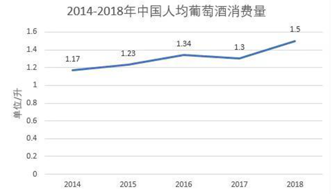 如上圖數(shù)據(jù)顯示,從2014-2018年,中國(guó)的葡萄酒人均消費(fèi)量從1.17升上漲至1.5升,增長(zhǎng)了28.2%,顯示出中國(guó)市場(chǎng)葡萄酒消費(fèi)的強(qiáng)勁增長(zhǎng)態(tài)勢(shì)。