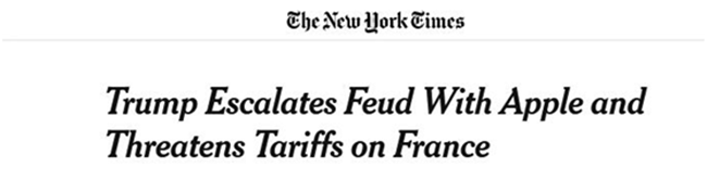 《紐約時報》表示,本周,法國總統馬克龍簽署法案決定對科技巨頭征收一項新數字稅,臉書、谷歌與亞馬遜等在內的全球互聯網巨頭成為潛在目標。稅率則高達3%。美國消費者新聞與商業頻道(CNBC)說,隨后,特朗普政府根據“1974年貿易法”啟動301調查。