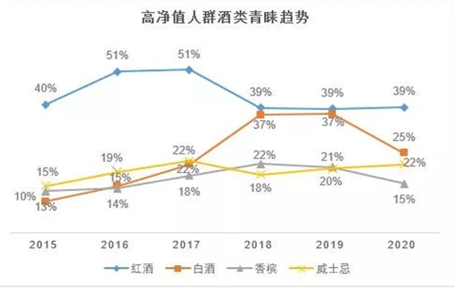 實(shí)際上,葡萄酒已越來(lái)越成為中國(guó)消費(fèi)者喜愛的酒精飲料。據(jù)胡潤(rùn)研究院發(fā)布《2020胡潤(rùn)至尚優(yōu)品—中國(guó)千萬(wàn)富豪品牌傾向報(bào)告》顯示,中國(guó)高凈值人群(平均家庭總資產(chǎn)4600萬(wàn)元)最青睞酒類是紅酒,對(duì)葡萄酒的喜愛甚至超過白酒。