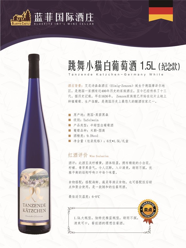 艾尼詩(shī)森森酒莊產(chǎn)出的葡萄酒果味濃郁,風(fēng)格優(yōu)雅,酸度和甜度平衡得恰到好處,讓不少酒迷甚至葡萄酒專家為之著迷。此次藍(lán)菲酒業(yè)重磅推出采用傳統(tǒng)工藝與現(xiàn)代技術(shù)相結(jié)合的理念釀造的跳舞小貓白葡萄酒(紀(jì)念款)、跳舞小貓紅葡萄酒(迷你款)以及艾尼詩(shī)-森森1939逐粒貴腐白葡萄酒,葡萄酒的品質(zhì)精益求精,滿足廣大消費(fèi)者的各種需求。