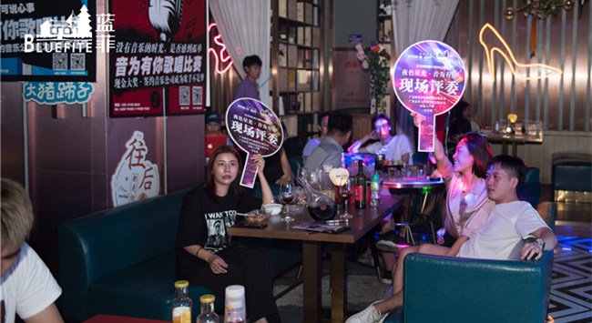 藍菲酒業獨家冠名夜色星光“音為有你”歌唱大賽,讓適宜的音樂將餐飲的氣氛上升一個檔次,讓消費者實現從飽腹到心靈愉悅的雙重滿足,為音樂、美食以及葡萄酒的結合賦能,同時打通葡萄酒銷售渠道,從而更好地增強了藍菲紅酒與消費者之間的粘性,讓餐飲終端與葡萄酒文化推廣終端完美結合。