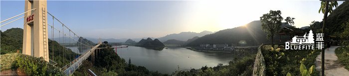 緊接著藍(lán)菲團(tuán)隊(duì)乘坐山體垂直觀光電梯,平布青云,扶遙直上,到達(dá)觀光電梯空中平臺(tái),一起俯瞰1680畝天鵝湖畔。我們相繼踏上擁有廣東省內(nèi)最長(zhǎng)、世界最長(zhǎng)喀斯特地貌湖景玻璃橋美稱的天宮玻璃橋,輕松就能將整個(gè)湖光山色盡收眼眸,翠綠蔥郁的北江峰林重巒疊嶂,天鵝湖依山傍水波光瀲滟,一覽無(wú)遺的自然美景凝聚著和諧氛圍,眼前開(kāi)豁的視野放松了我們的心情。